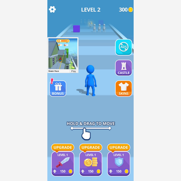 And this is where they first see a rewarded video ad – to be exact, a multiplier after the game. This multiplier triples their earnings – from 300 to 900 coins. Tempting, right? After watching, they make it clear they actually won 900 coins.