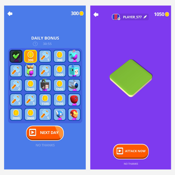 Now that you’re familiar with the types of rewarded video ads, let’s see how they look like in gameplay, and which ones are used most. Here’s how two games from different genres included rewarded video ads in their monetization mix.